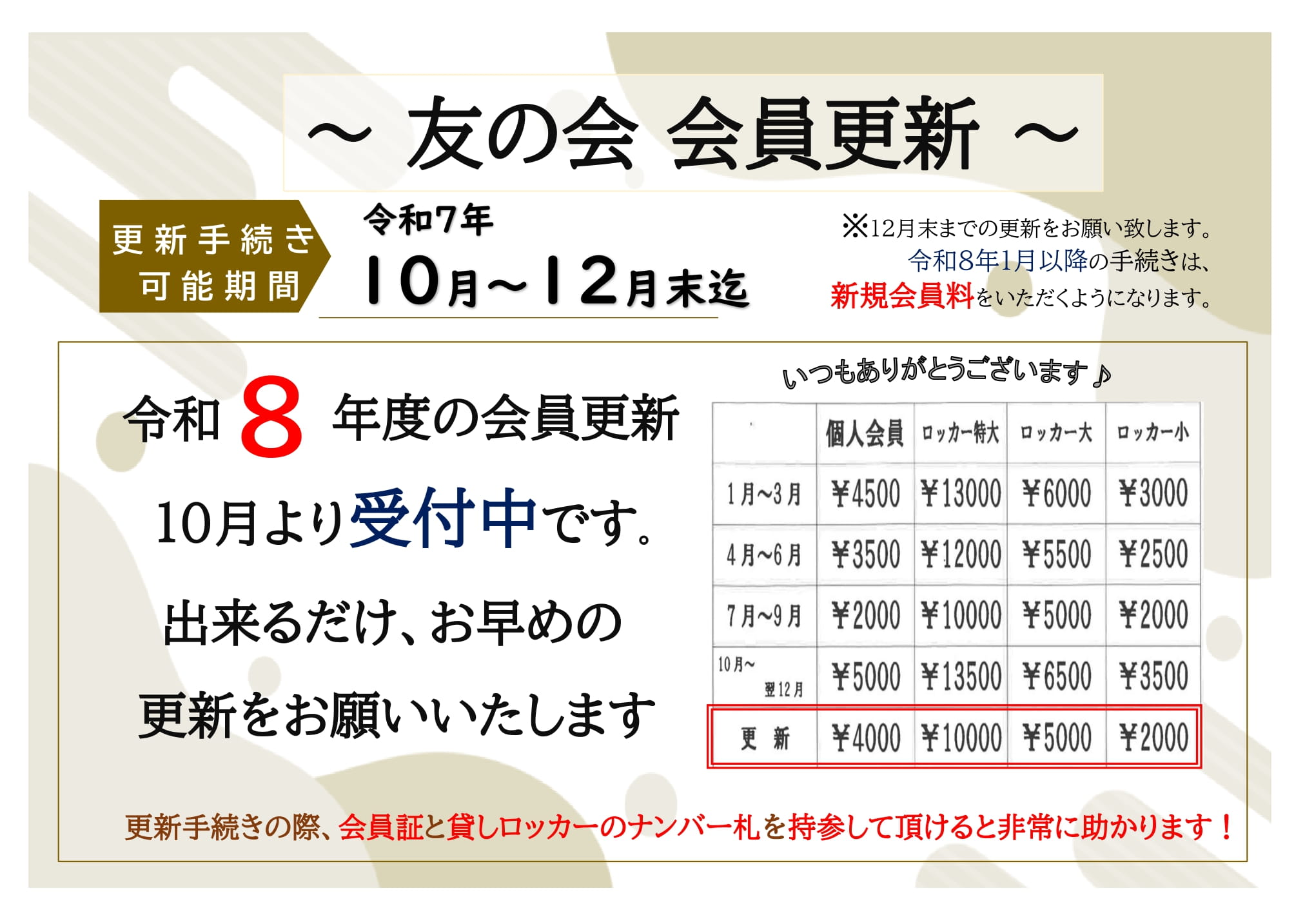 - ◆令和8年度の会員更新、10月より受付です。お早めに更新をお願いいたします。詳しくはこちらをご覧ください。NEW