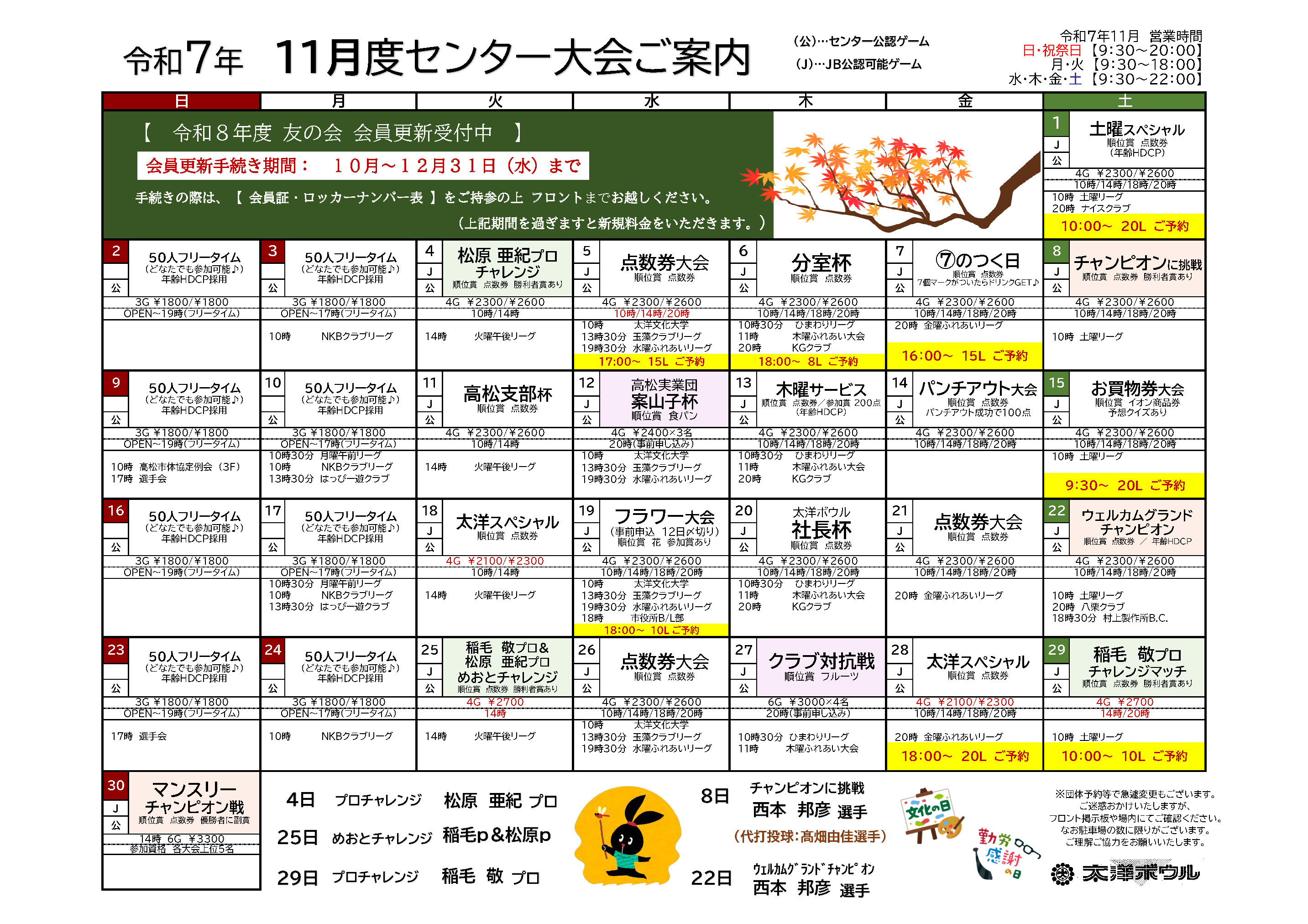 太洋ボウルでは、各種大会やイベントを毎日開催しています。ぜひともお誘い合わせの上、ふるってご参加ください。